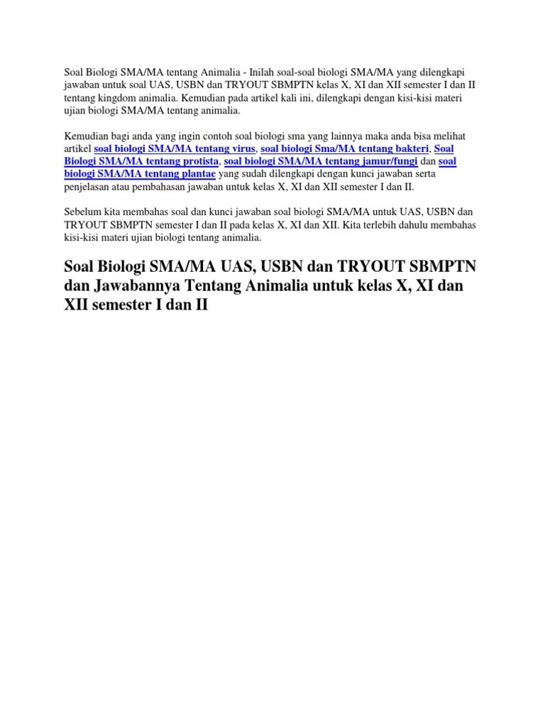 Soal ujian tes potensi skolastik utbk sbmptn 2019 bukapintu. 9, kingdom plantae dan animalia, download. Soal biologi bab animalia invertebrata kunci jawaban 50 pilgan ada berbagai. Dunia animalia (hewan) mempunyai persamaan ciri dengan dunia fungi (jamur) dalam hal berikut ini, kecuali. Artikel ini membahas materi utbk biologi lengkap dengan latihan soal utbk saintek biologi dan pembahasannya.