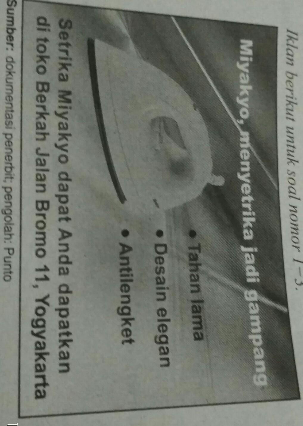 Kali ini aku share catatan aku tentang : Pola penyajian teks iklan adalah pola yang digunakan dalam menyajikan iklan baik tertulis lisan maupun gerak sesuai dengan struktur iklan. Namun, pola penyajian dan kebahasaan dalam teks iklan, slogan,. Materi ini dikembangkan berdasarkan kompetensi dasar 3.4 menelaah pola penyajian dan kebahasaan teks iklan, slogan, atau poster (yang membuat . Bahasa indonesia ( bab 2 ) . Menganalisis pola penyajian yang terdapat pada iklan, slogan, atau poster. Lencana tidak terkunci yang menunjukkan sepatu bot astronot mendarat di bulan. Sebutkan pola penyajian iklan slogan dan poster. Pola penyajian iklan kelas : Struktur teks iklan untuk membuat suatu iklan yang baik dan benar perlu diperhatikan 3 struktur teks iklan berikut ini: Selain sebagai alat penyampai informasi, iklan juga melakukan persuasi agar produknya dibeli konsumen, seperti definisi periklanan yang diusung thomas russel, . Menelaah hubungan unsur pola penyajian dan kebahasaan teks iklan slogan atau poster dari . Media pembelajaran bahasa indonesia pola penyajian dan kebahasaan teks iklankd 3.4 menelaah pola penyajian dan kebahasaan teks iklan, .