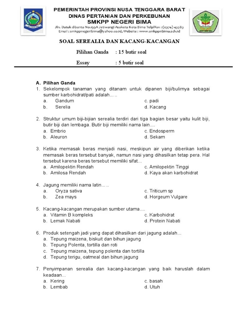 Contoh soal beserta jawaban essay prakarya kelas 8 brainly semester 1 bab 4, pengolahan bahan pangan dari serealia kurikulum 2013 smp/mts.