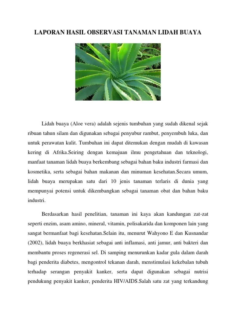 Observasi Lidah Buaya - â Contoh Teks Laporan Hasil Observasi Tumbuhan dan Strukturnya : Laporan hasil observasi tanaman lidah buayalidah buaya (aloe vera) adalah sejenis tumbuhan yang sudah dikenal sejak ri.